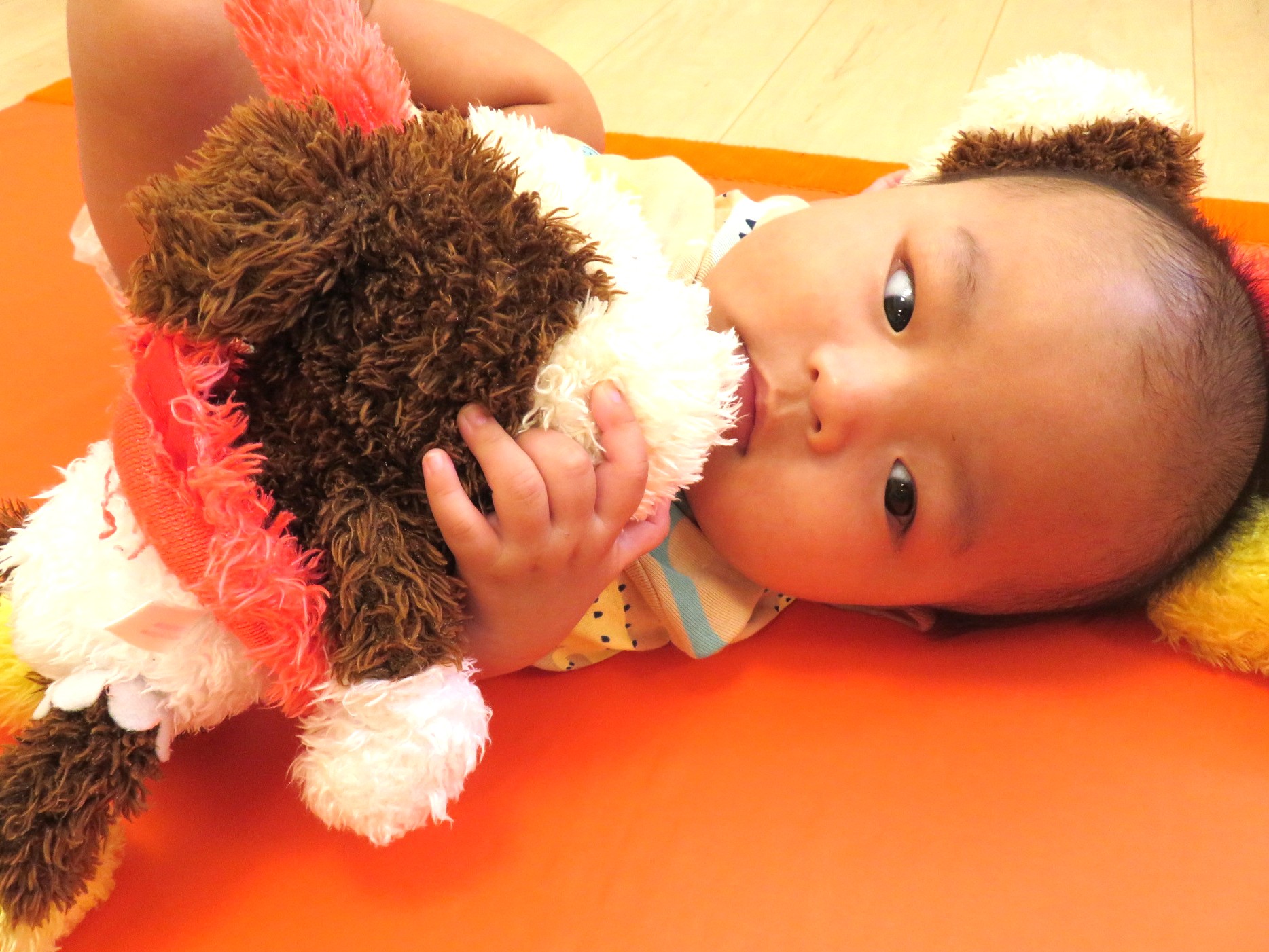 歩けないひよこ組のお友だちは、マットでお人形遊びをしました💕