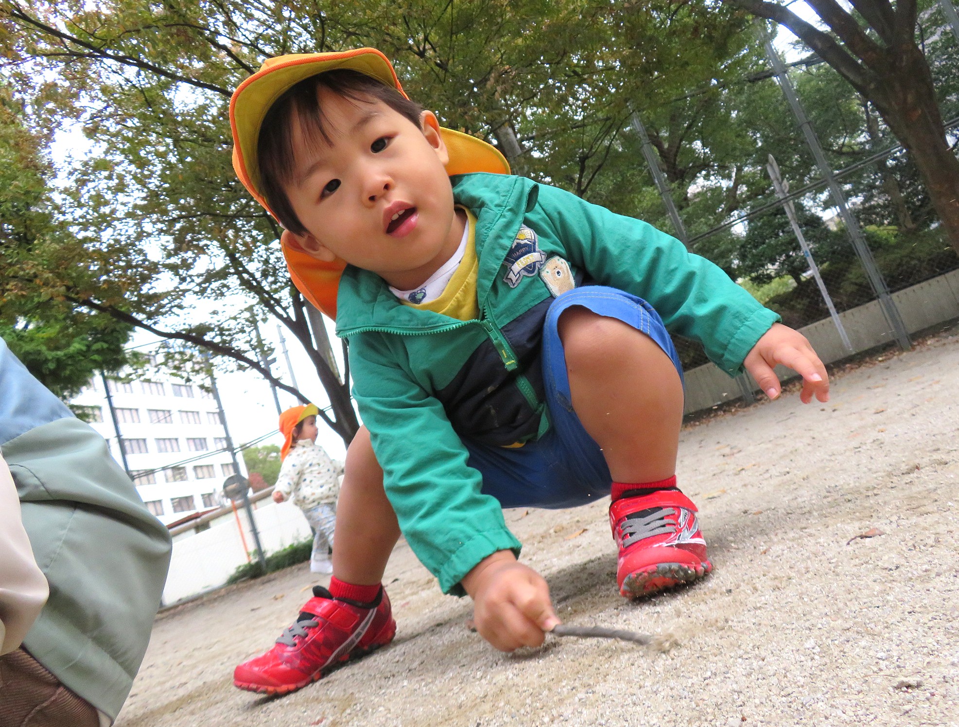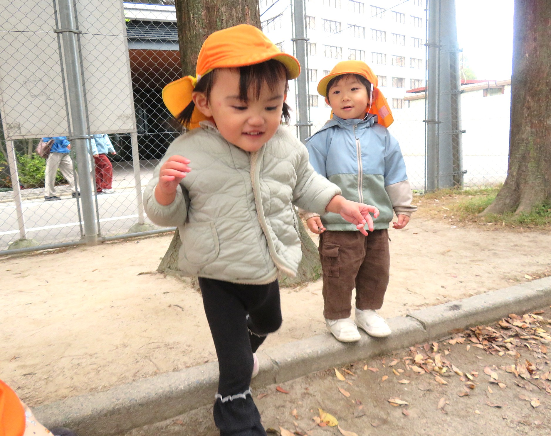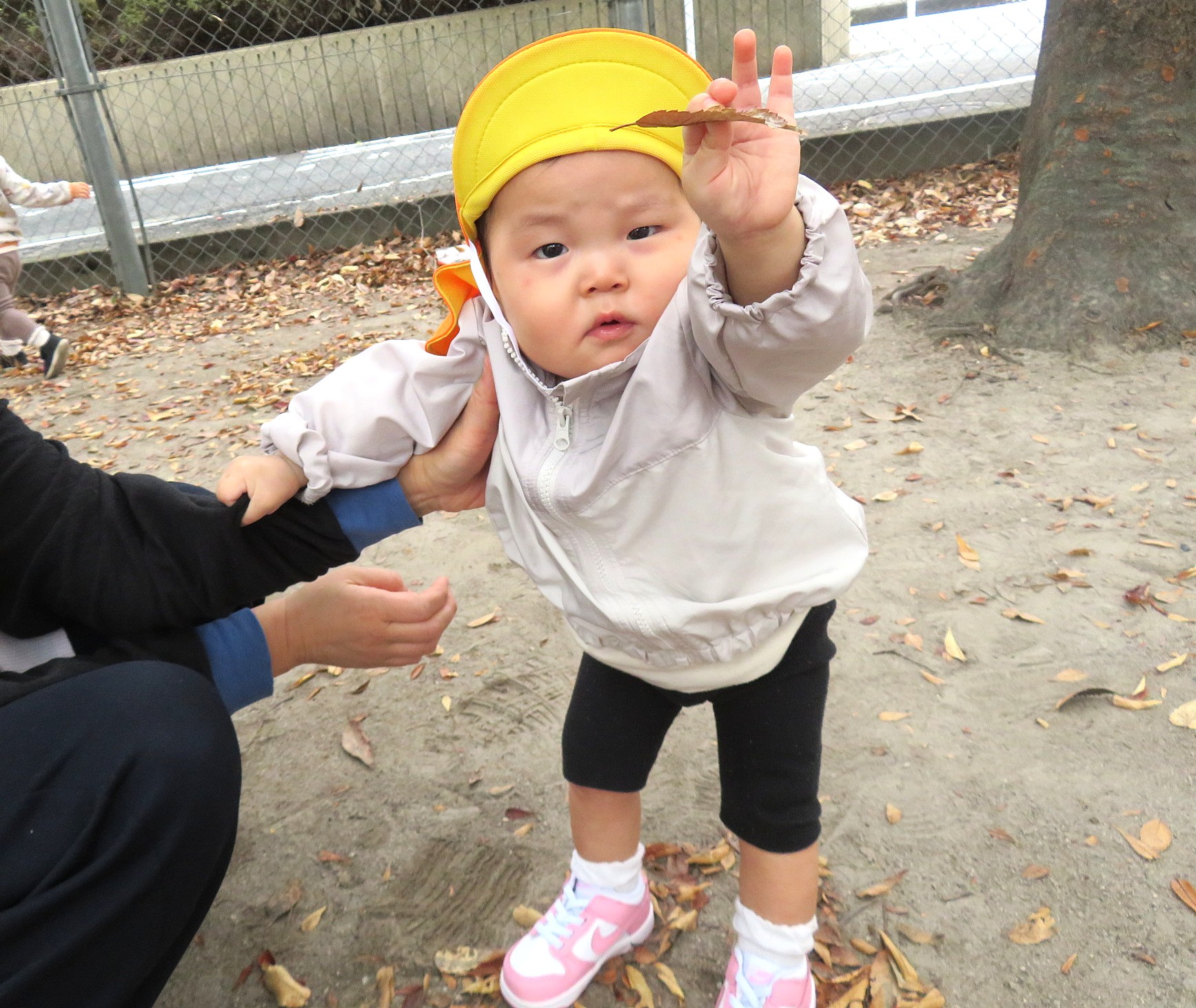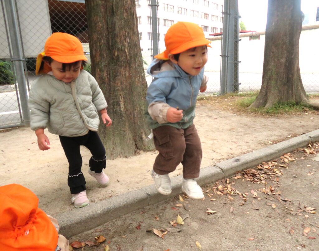 落ち葉を見つけて遊んだり~