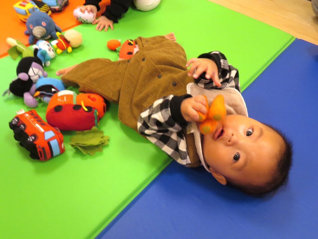 今日はマットの上で体を動かしたりぬいぐるみで遊んだりしました🎵