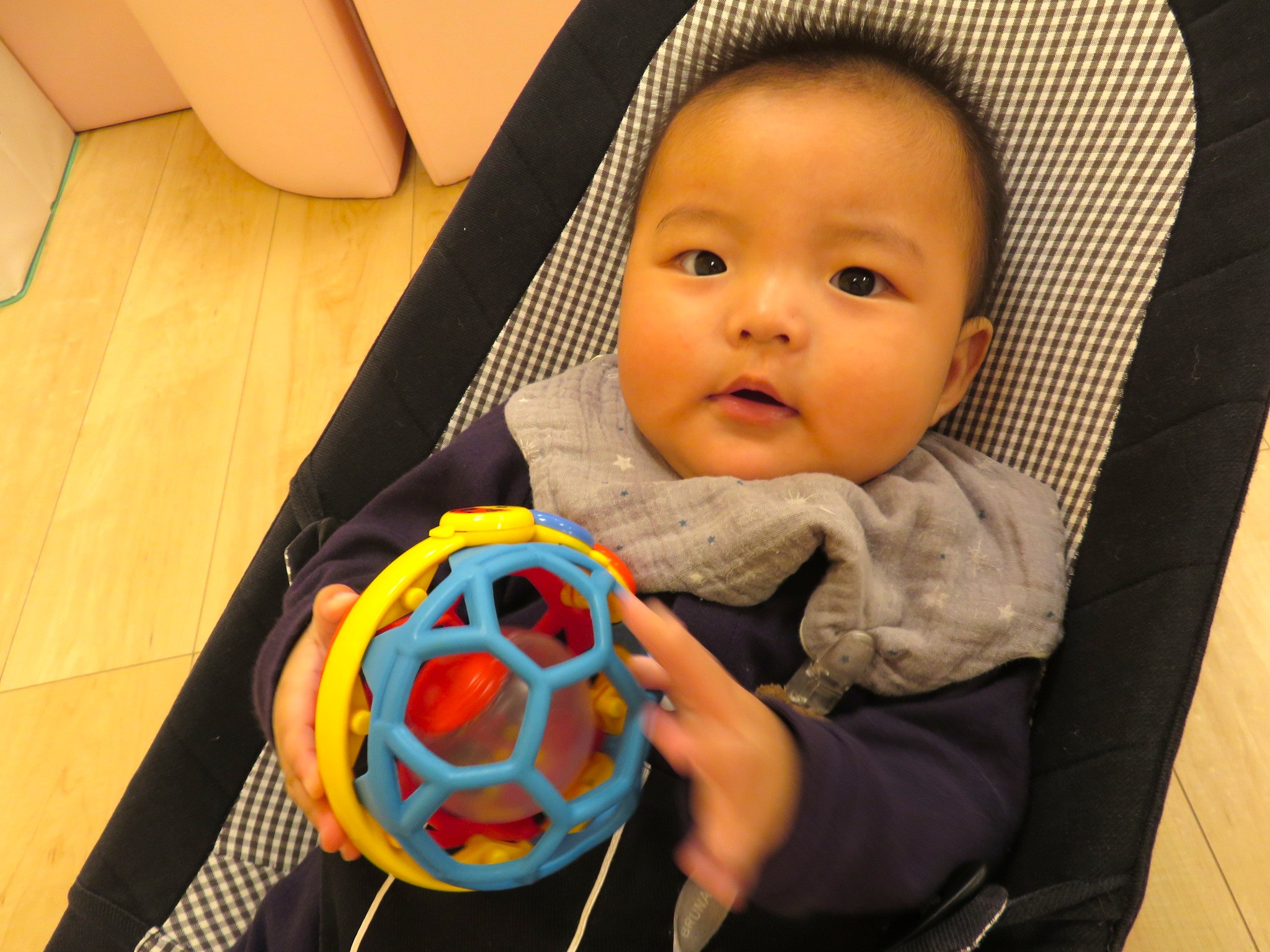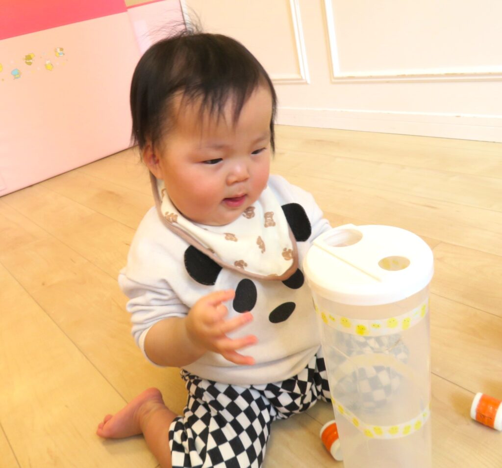 中のボールが動くのが不思議なようで、じっと見ています👀