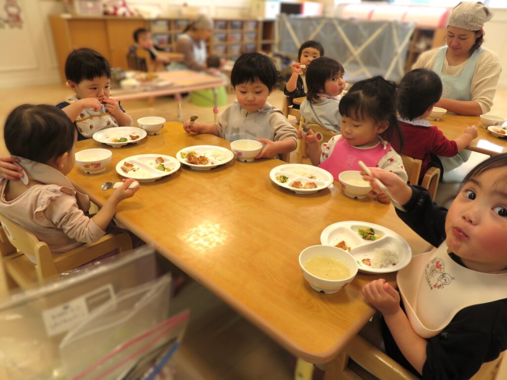 自分で食べるのが上達してきたりす組のお友だち🐿️