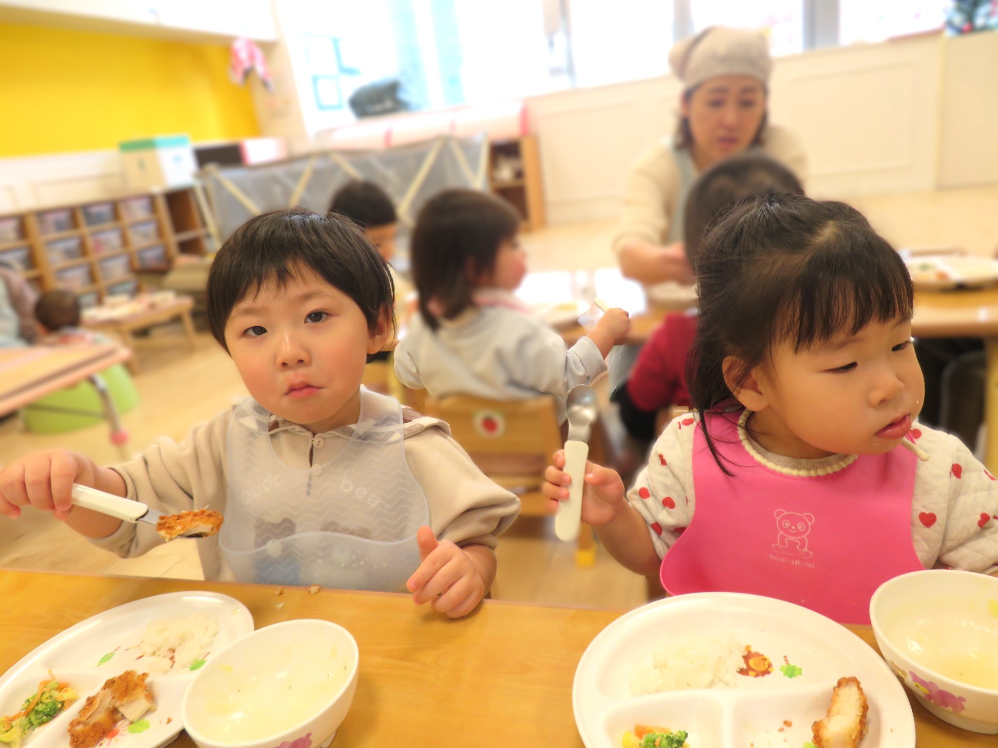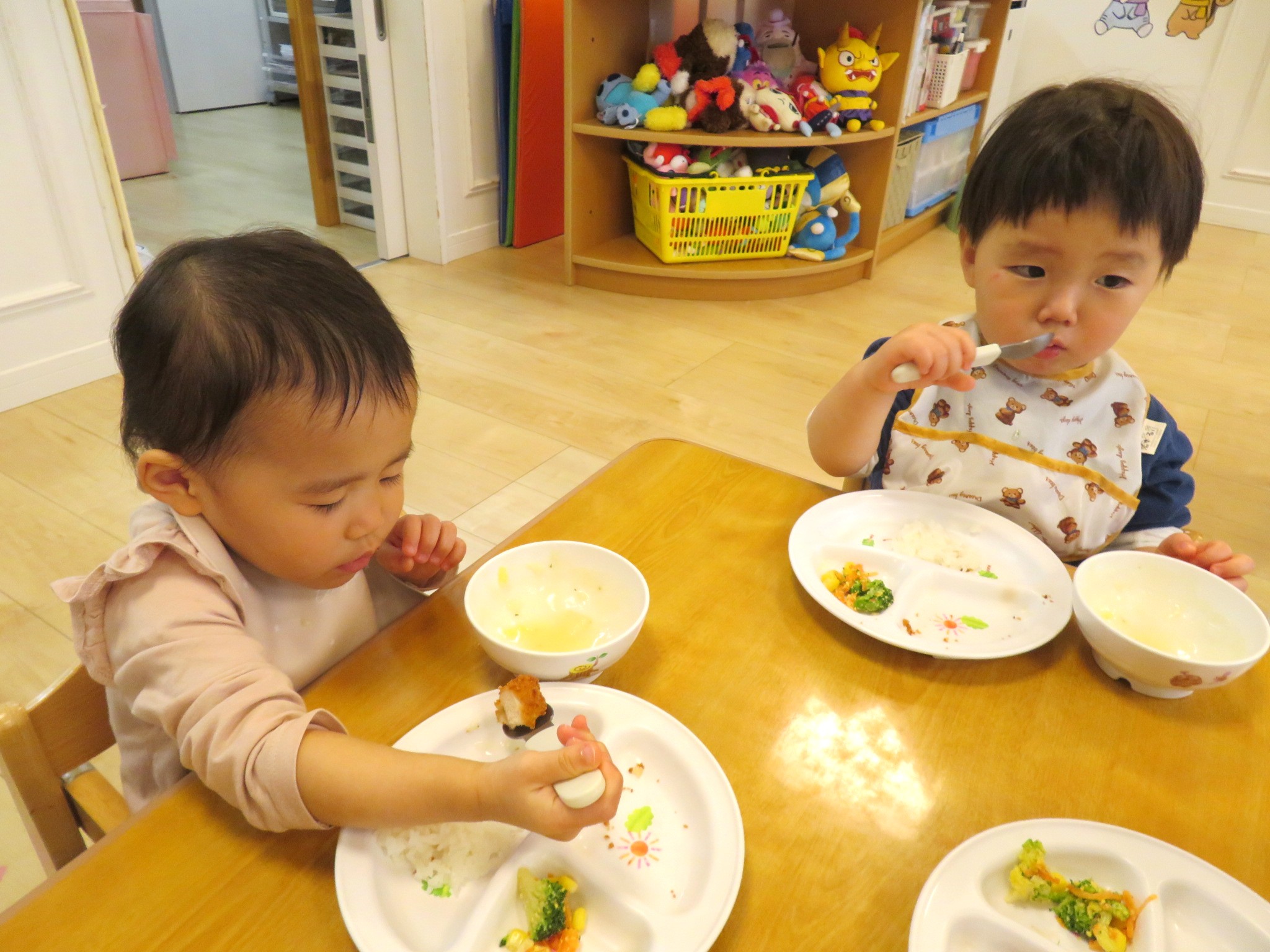 パクパク食べ進めるひよこ組のOちゃん2人です💕