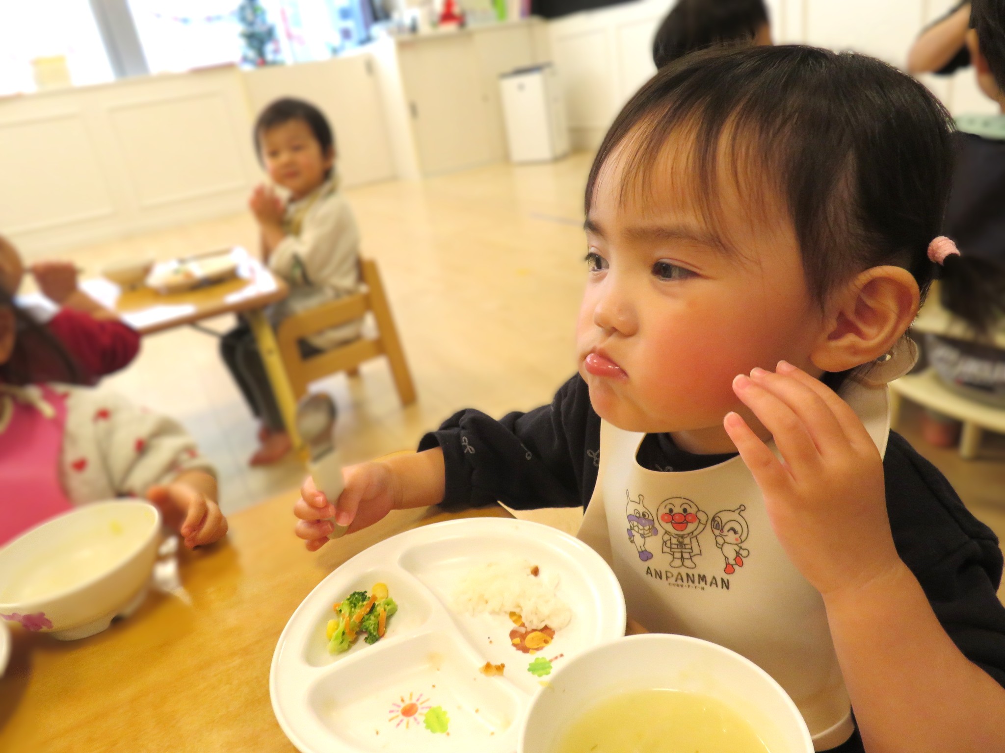 自分で食べるのが上達してきたりす組のお友だち🐿️