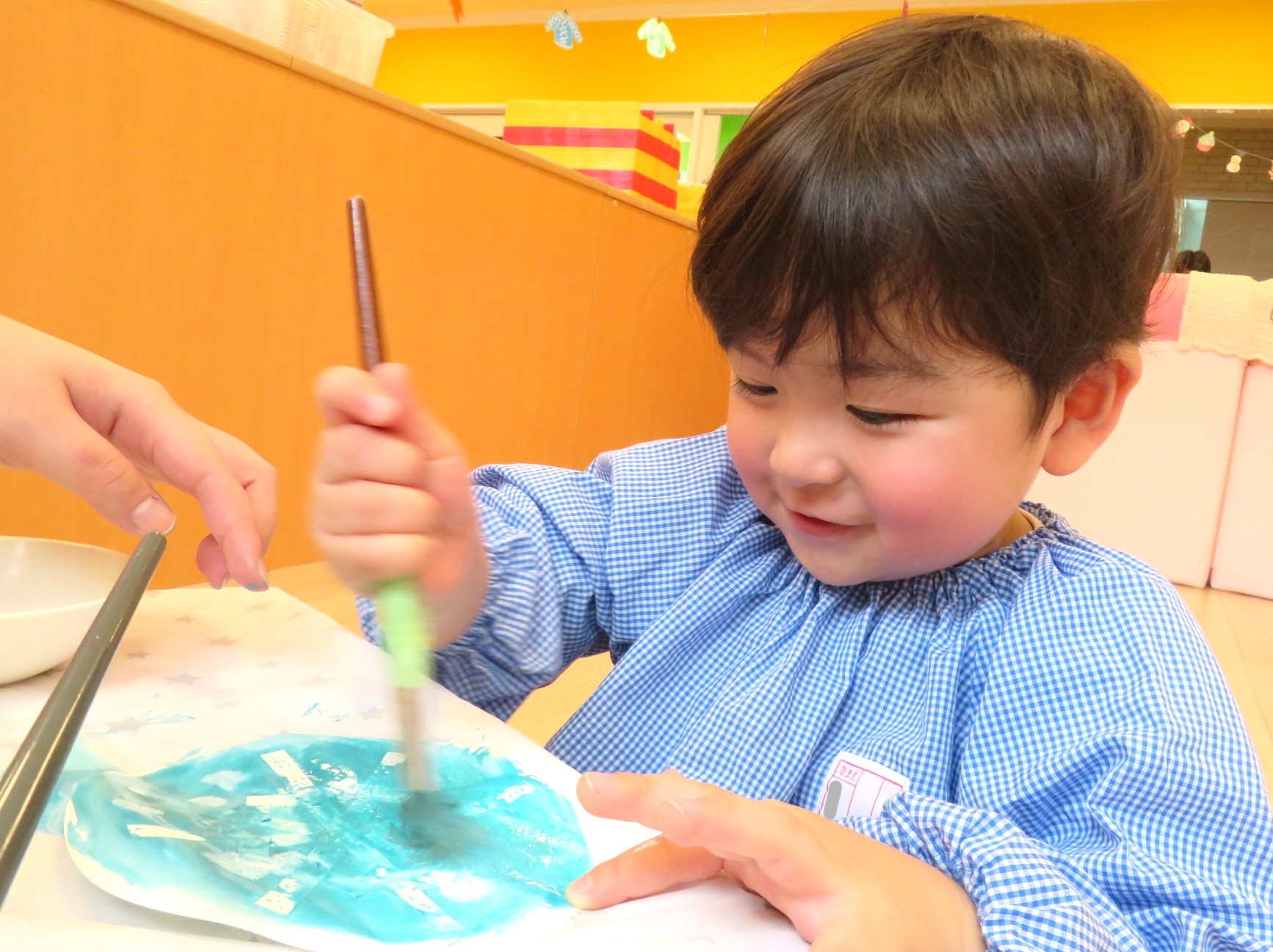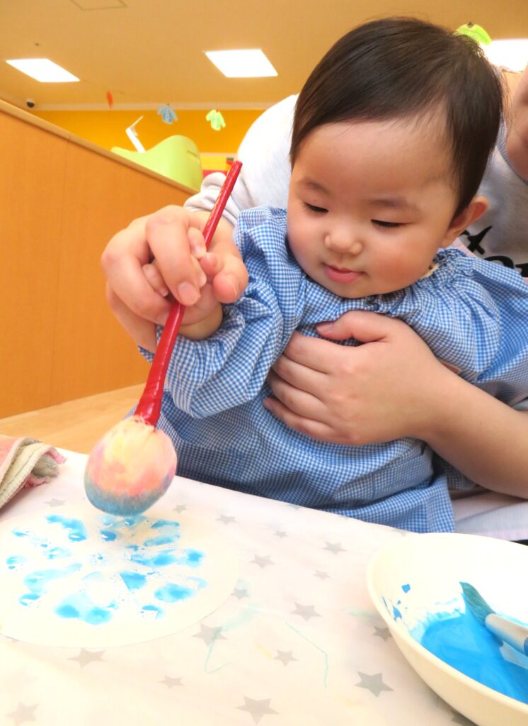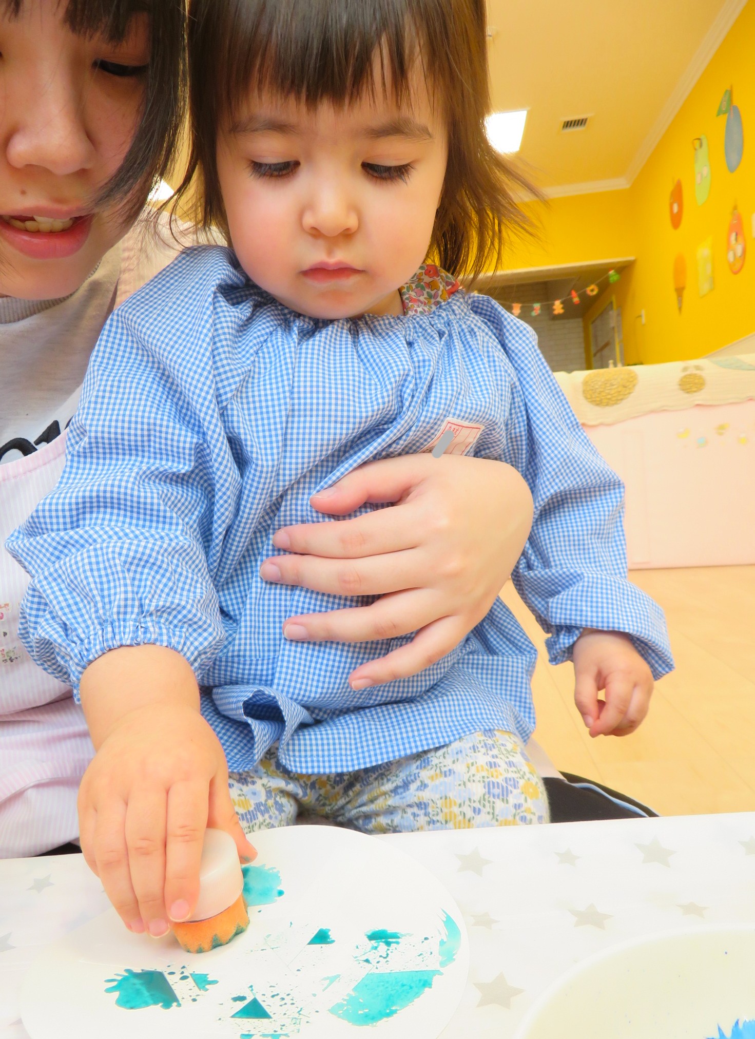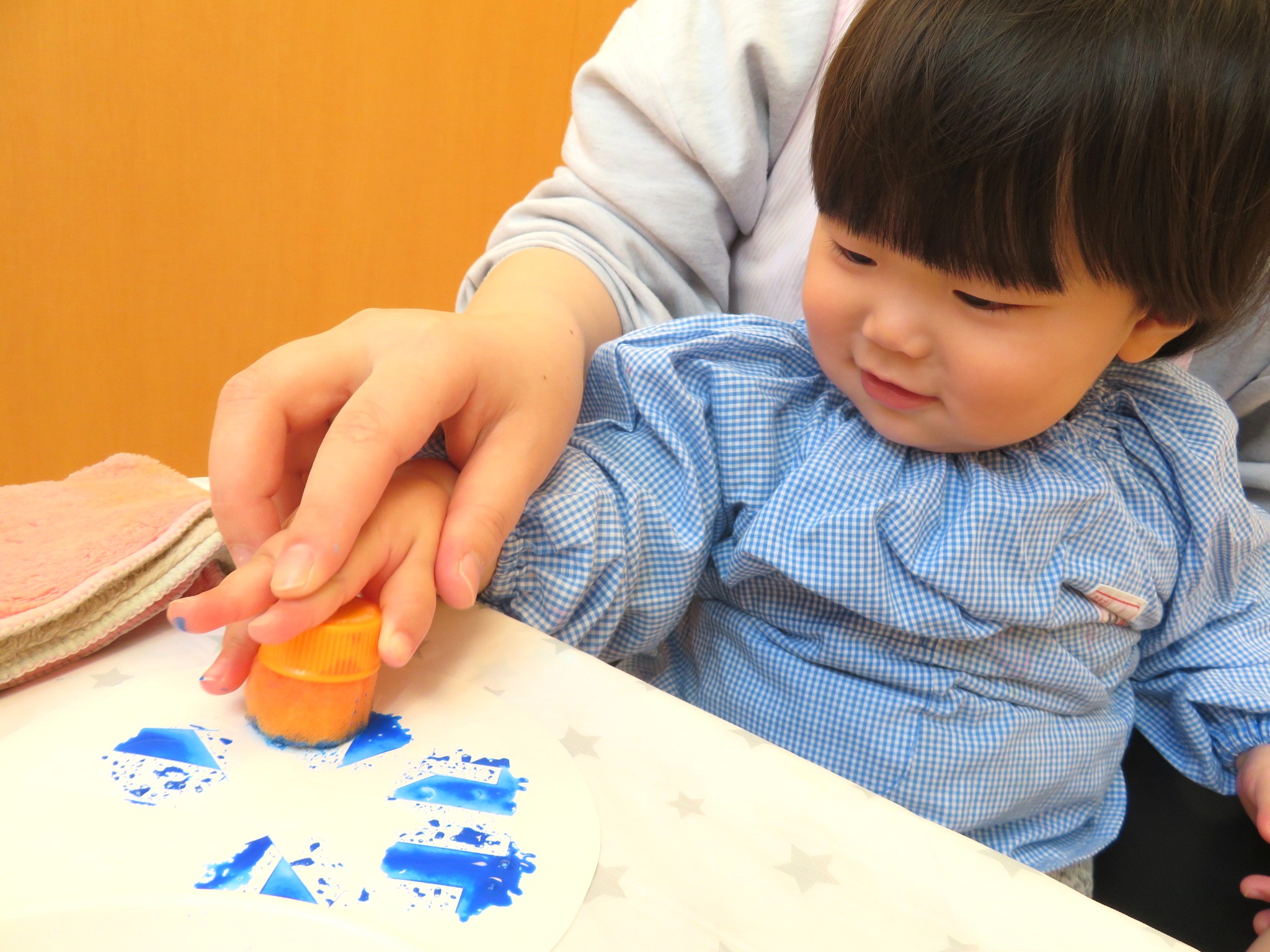 タンポやスポンジスタンプ、筆を使って絵の具をぬりぬり~🎨