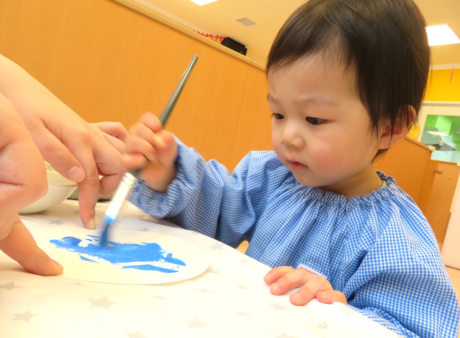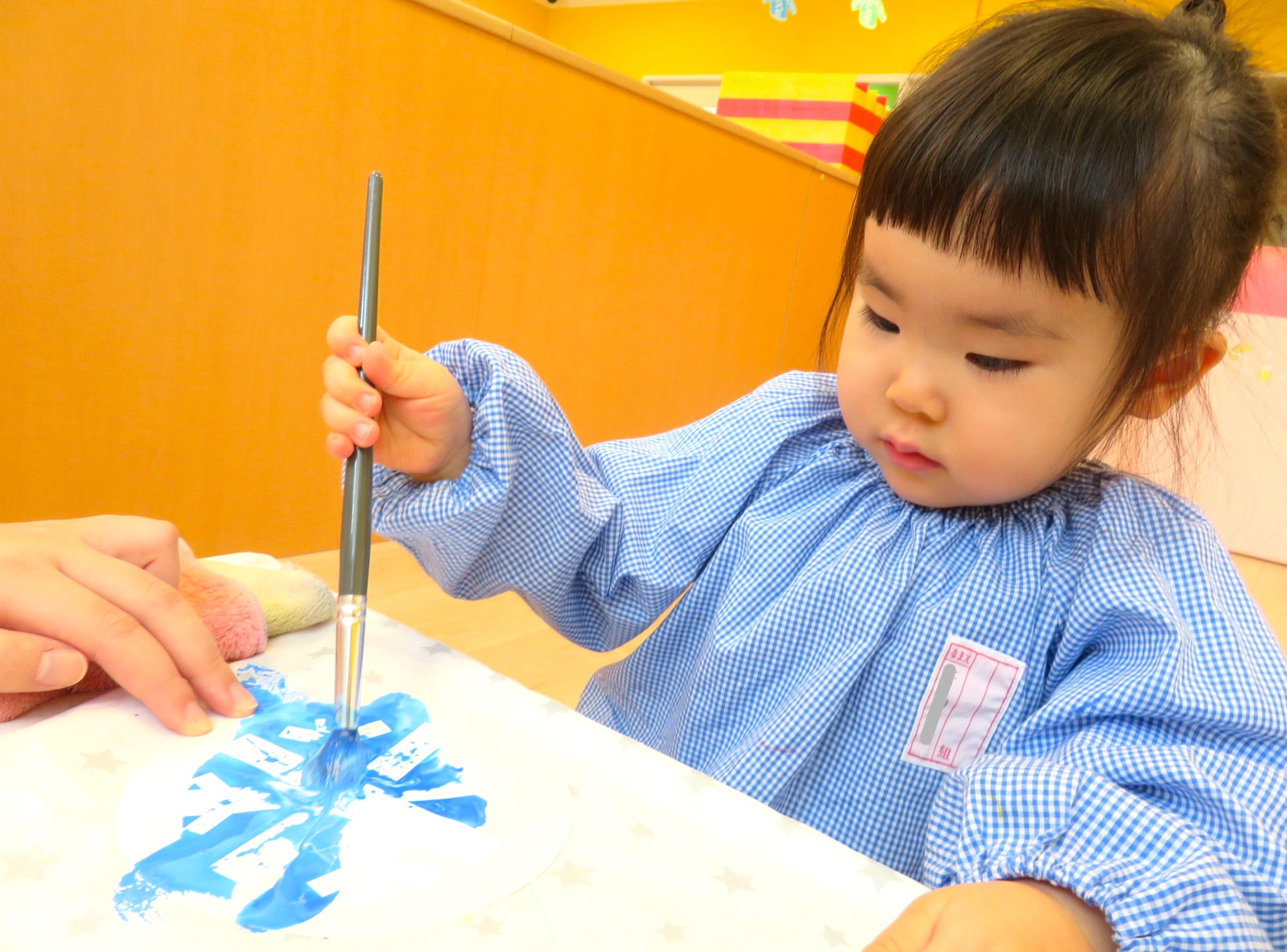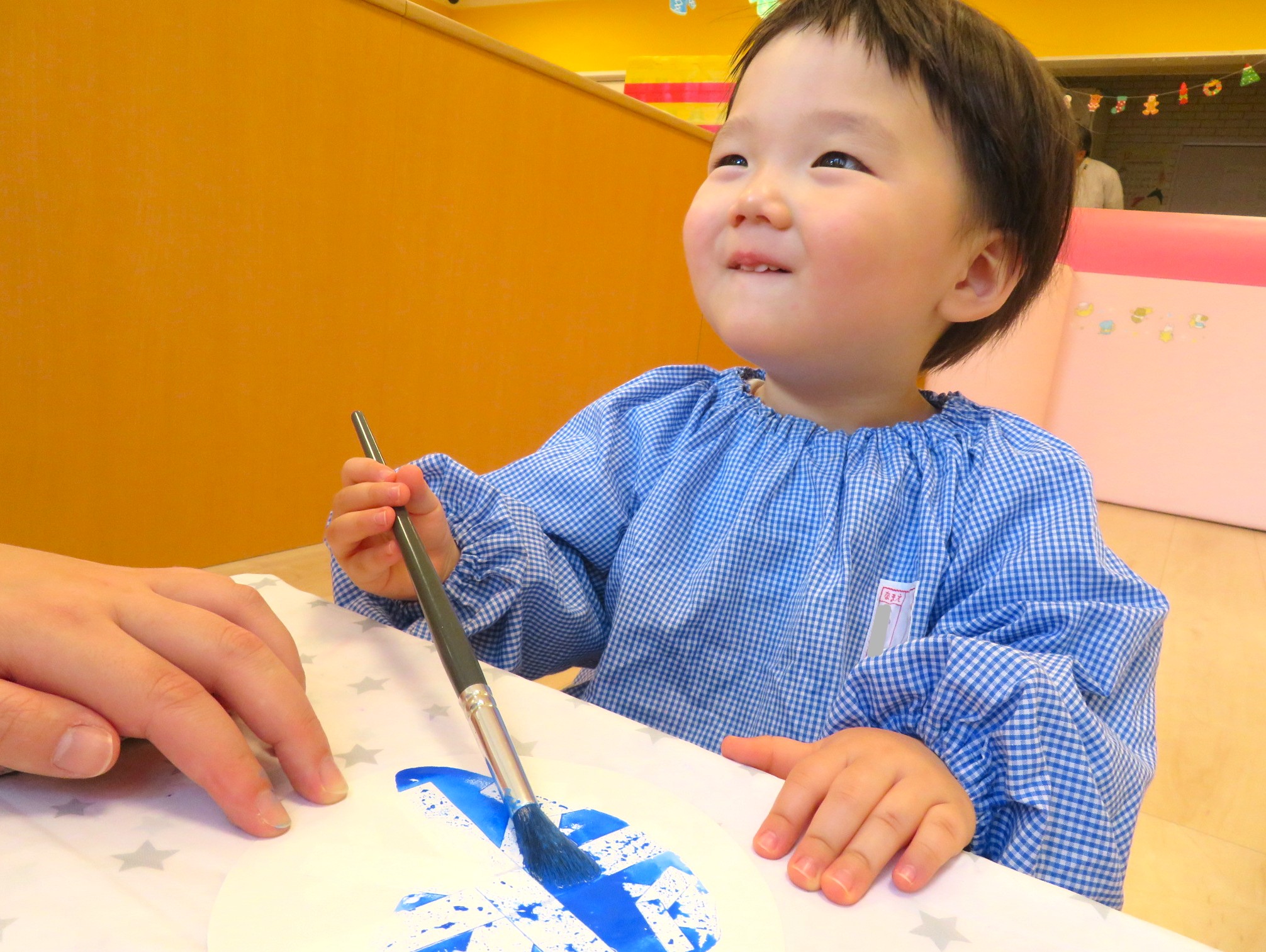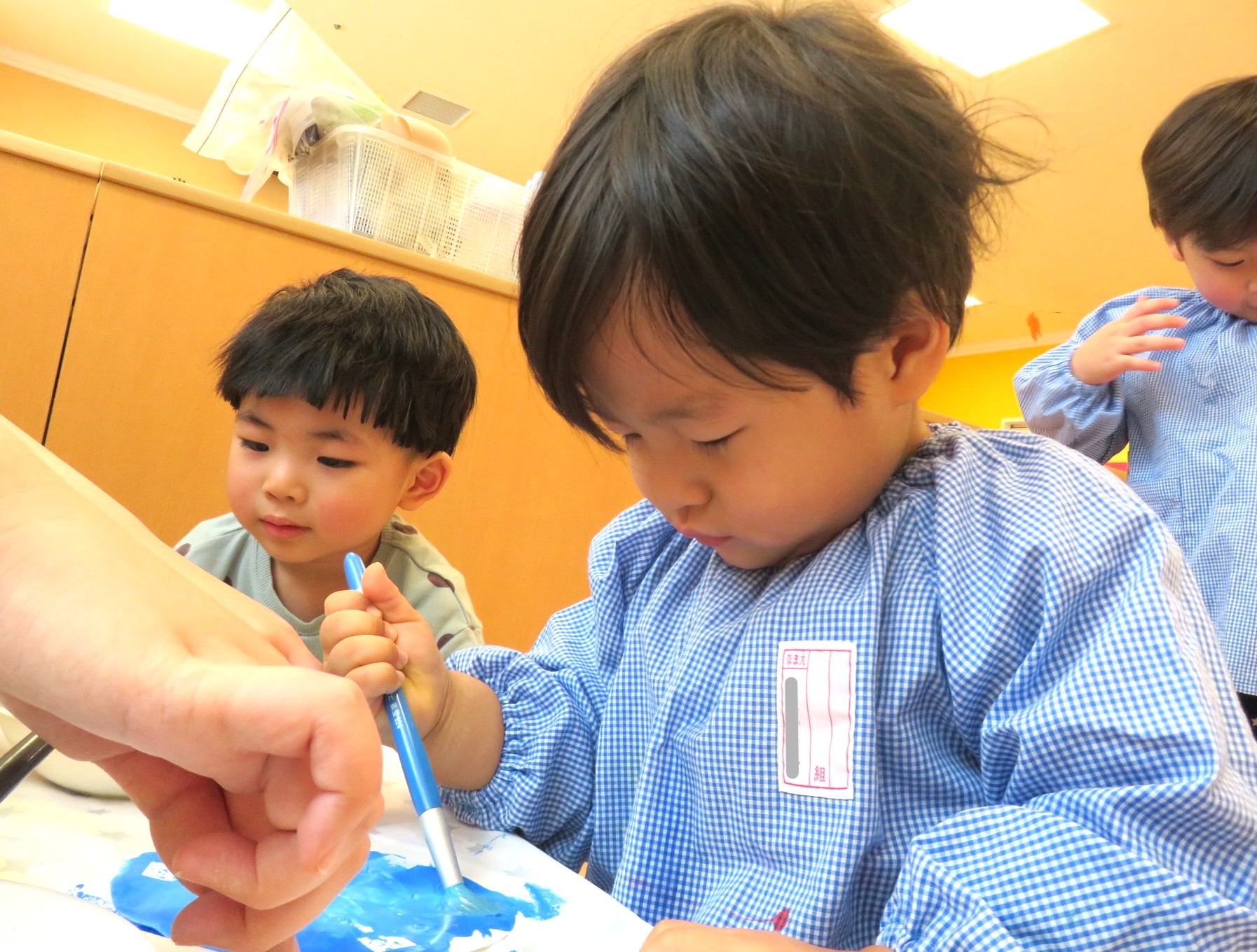 タンポやスポンジスタンプ、筆を使って絵の具をぬりぬり~🎨