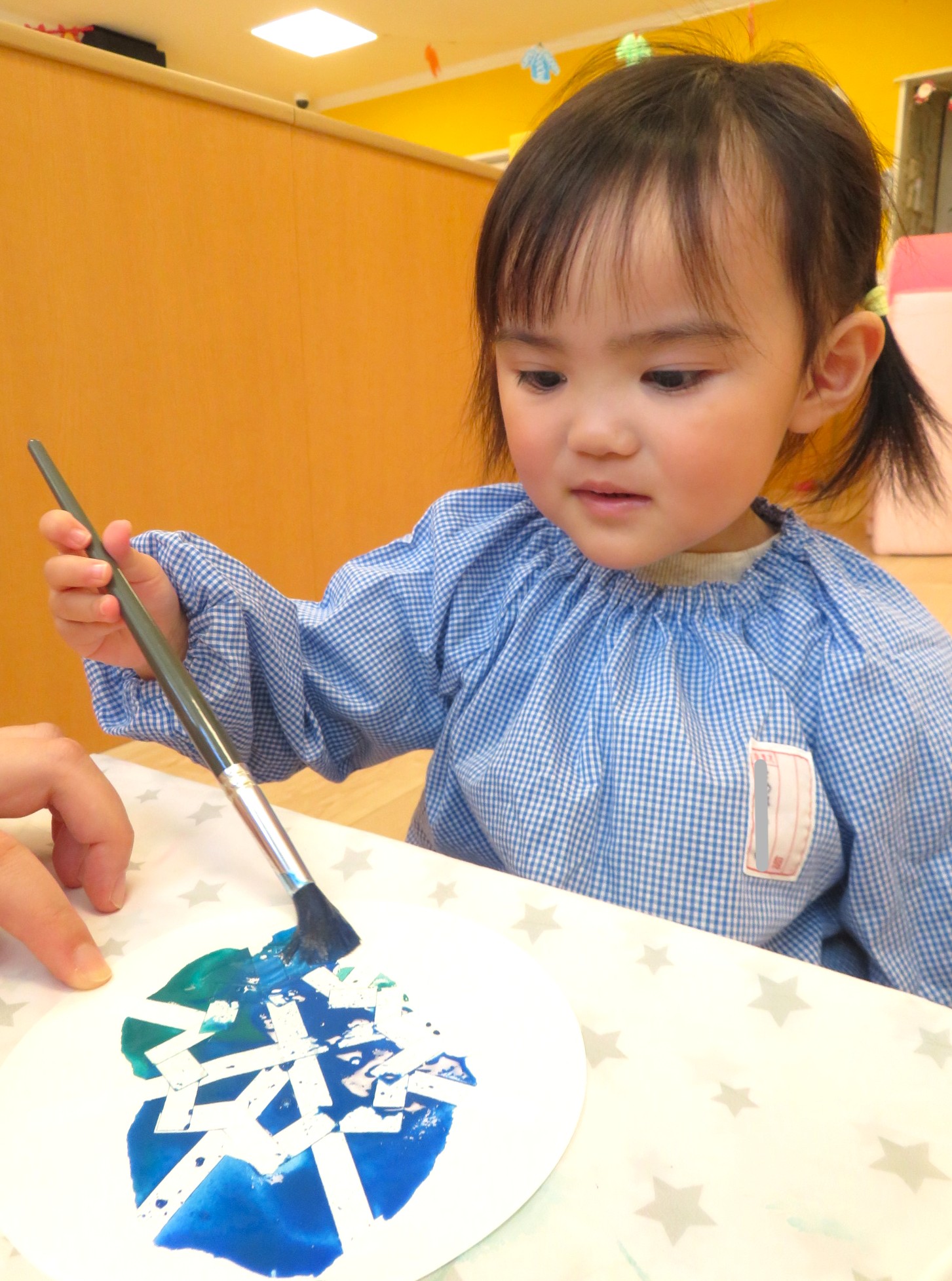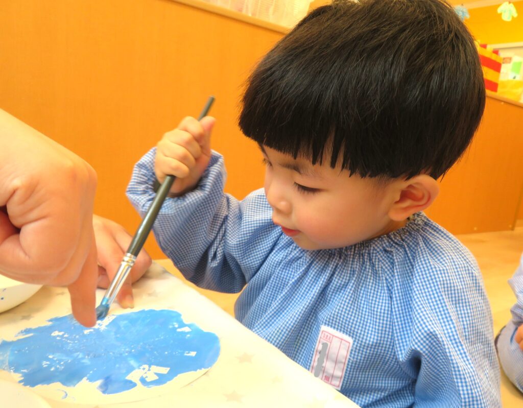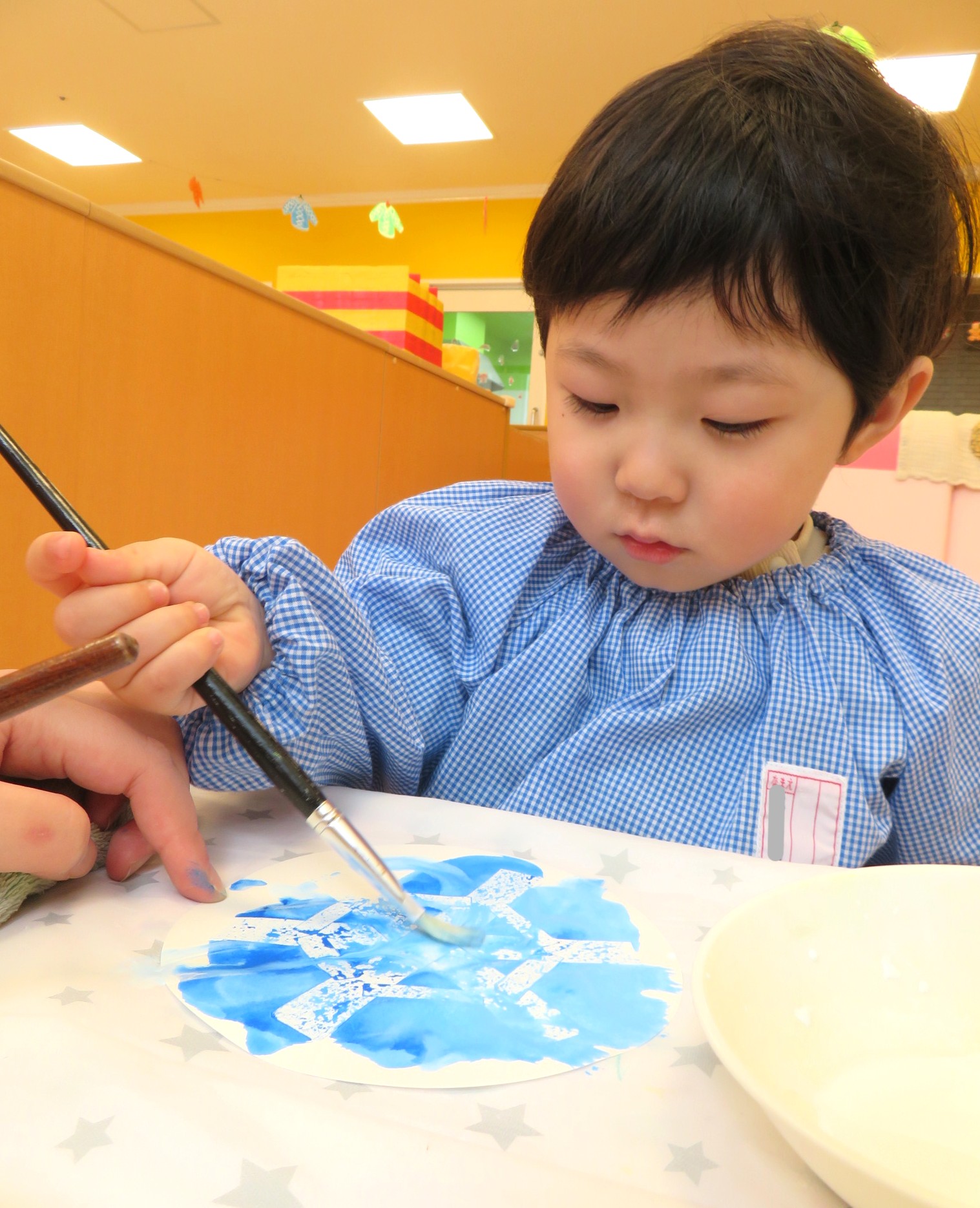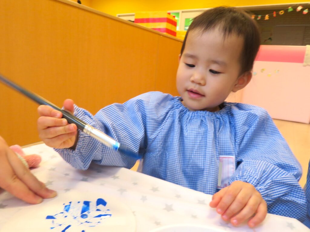 タンポやスポンジスタンプ、筆を使って絵の具をぬりぬり~🎨