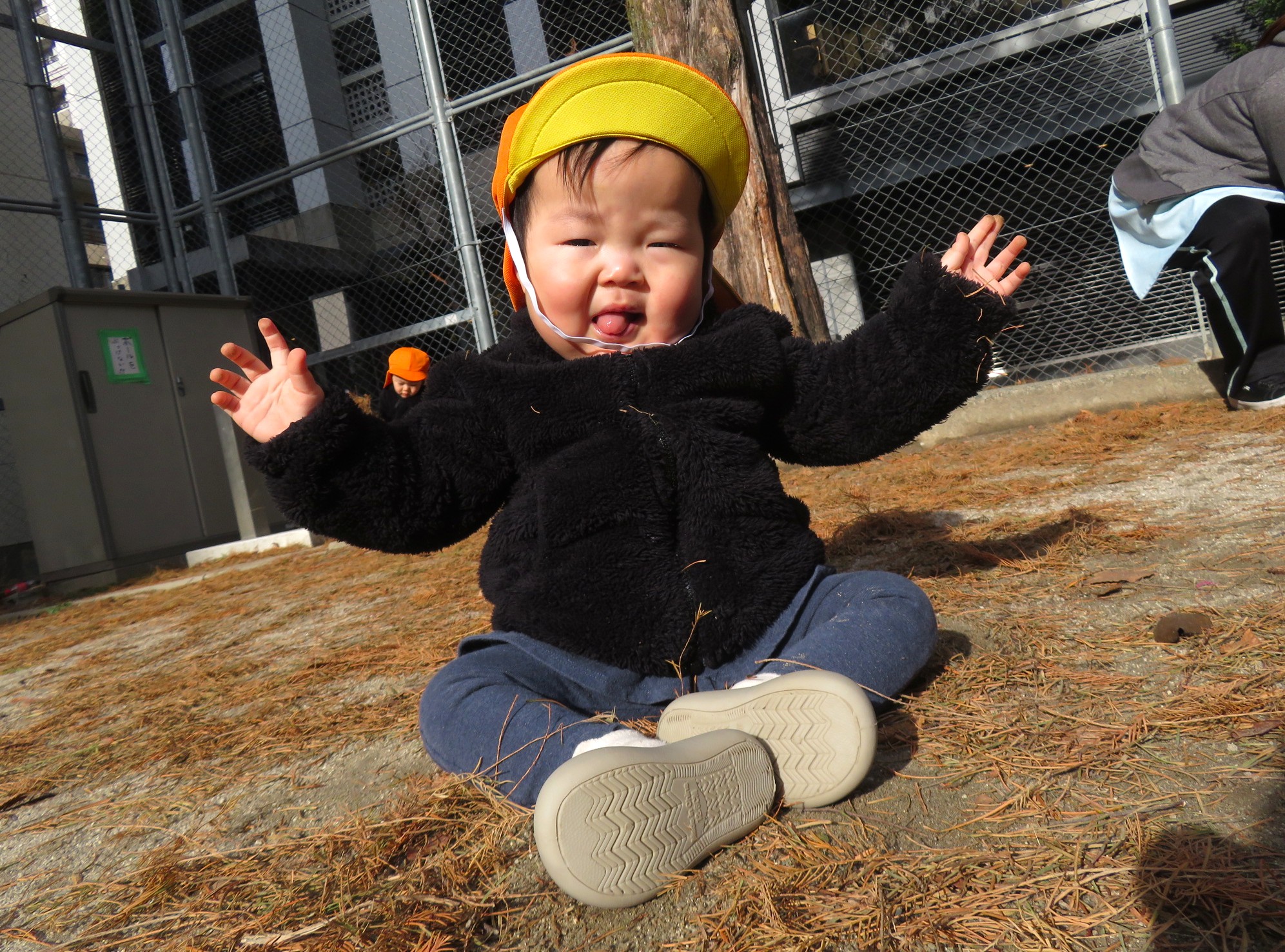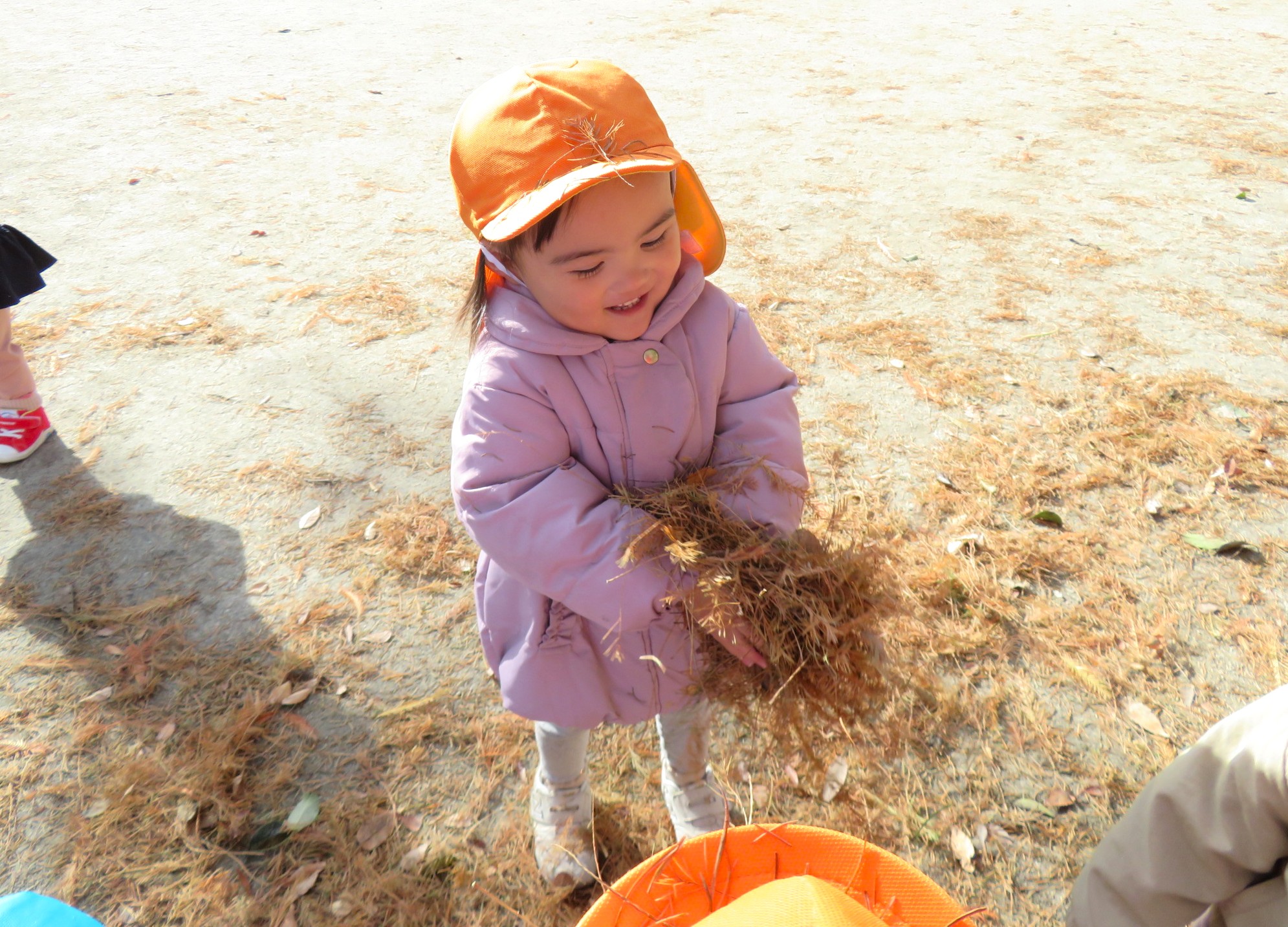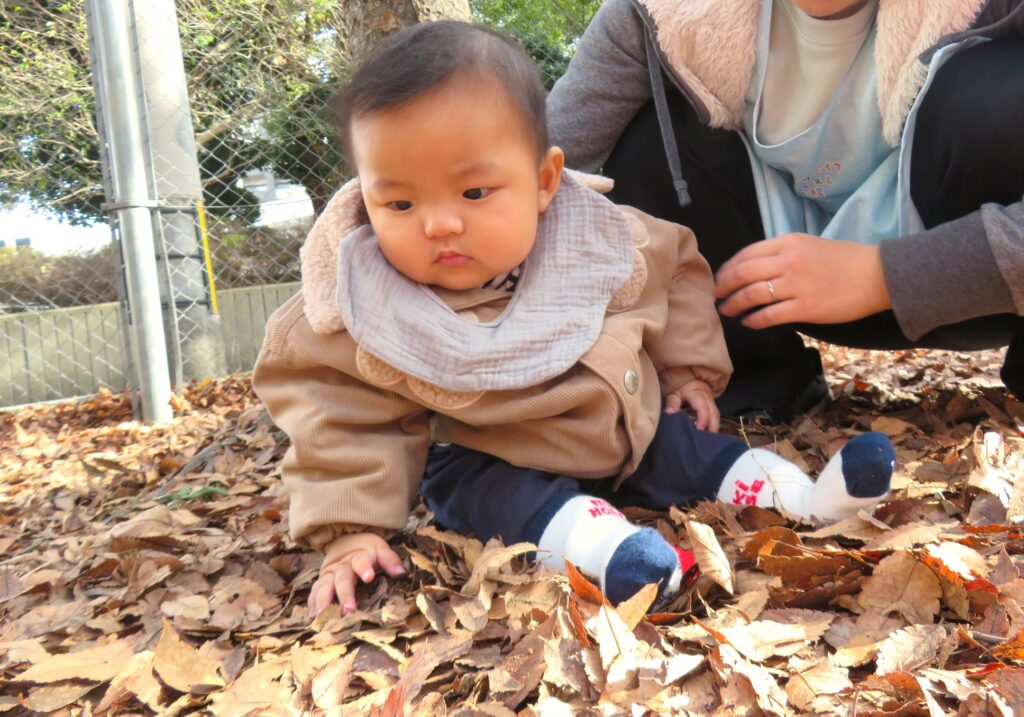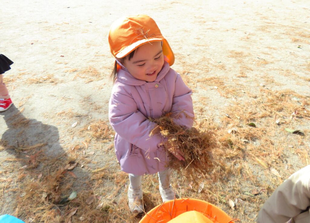 両手に大量の落ち葉を抱えて、豪快に散らす子ども達でした🍂😀