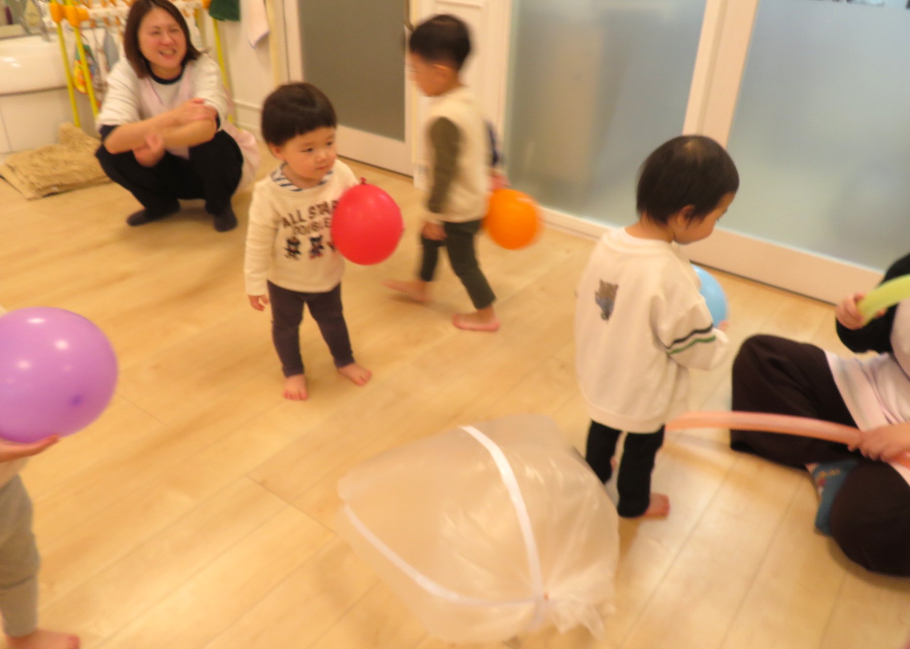 風船がこわくてちょっぴり泣いてしまうお友だちなども見られましたよ❢