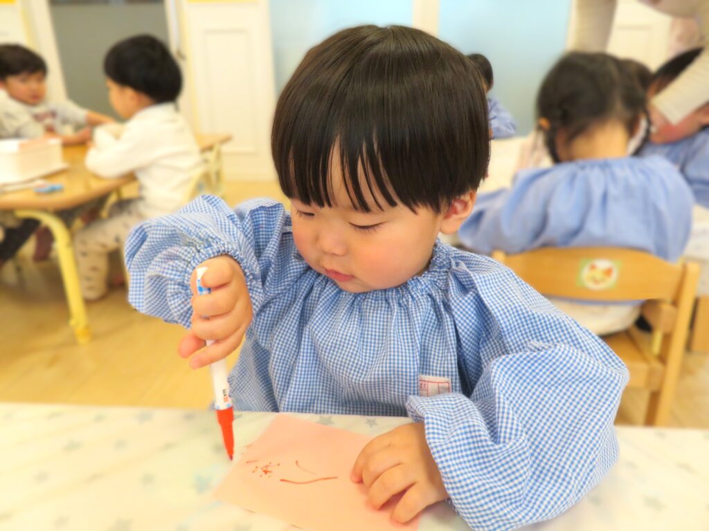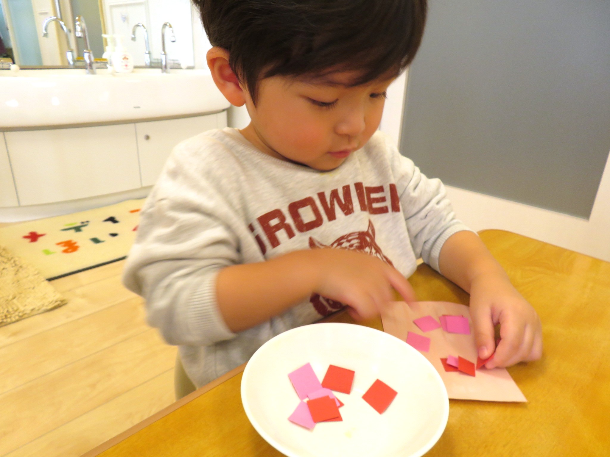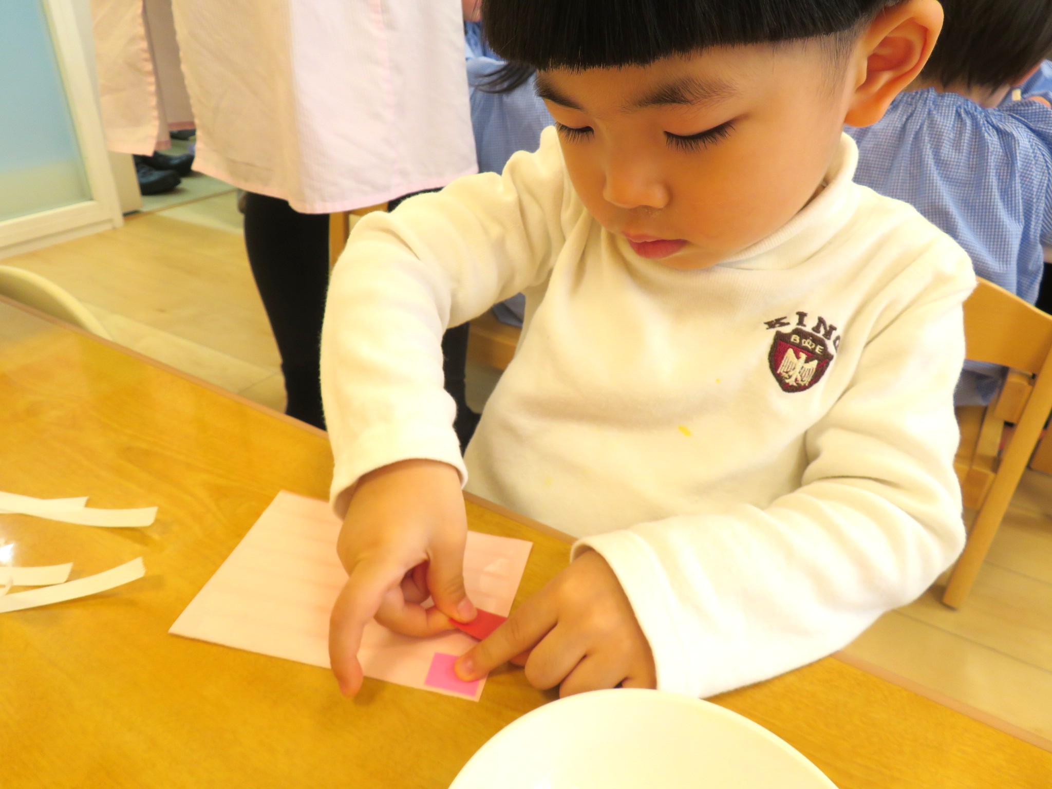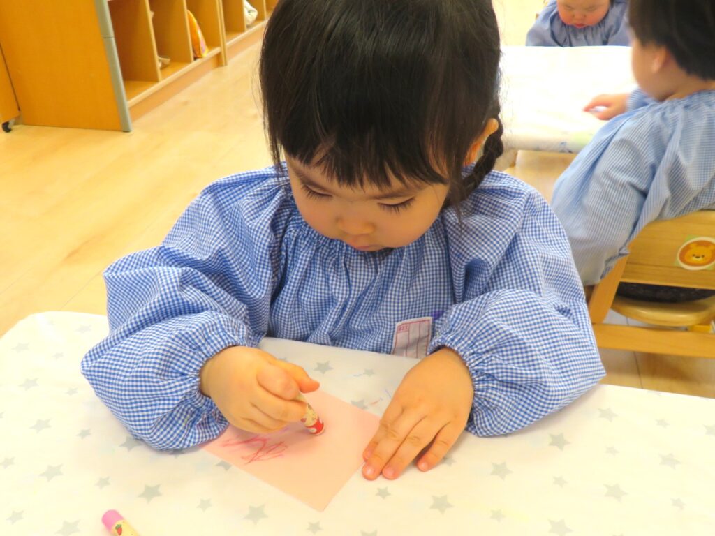 今回は第1弾でピンクの画用紙にそれぞれ製作してます😊