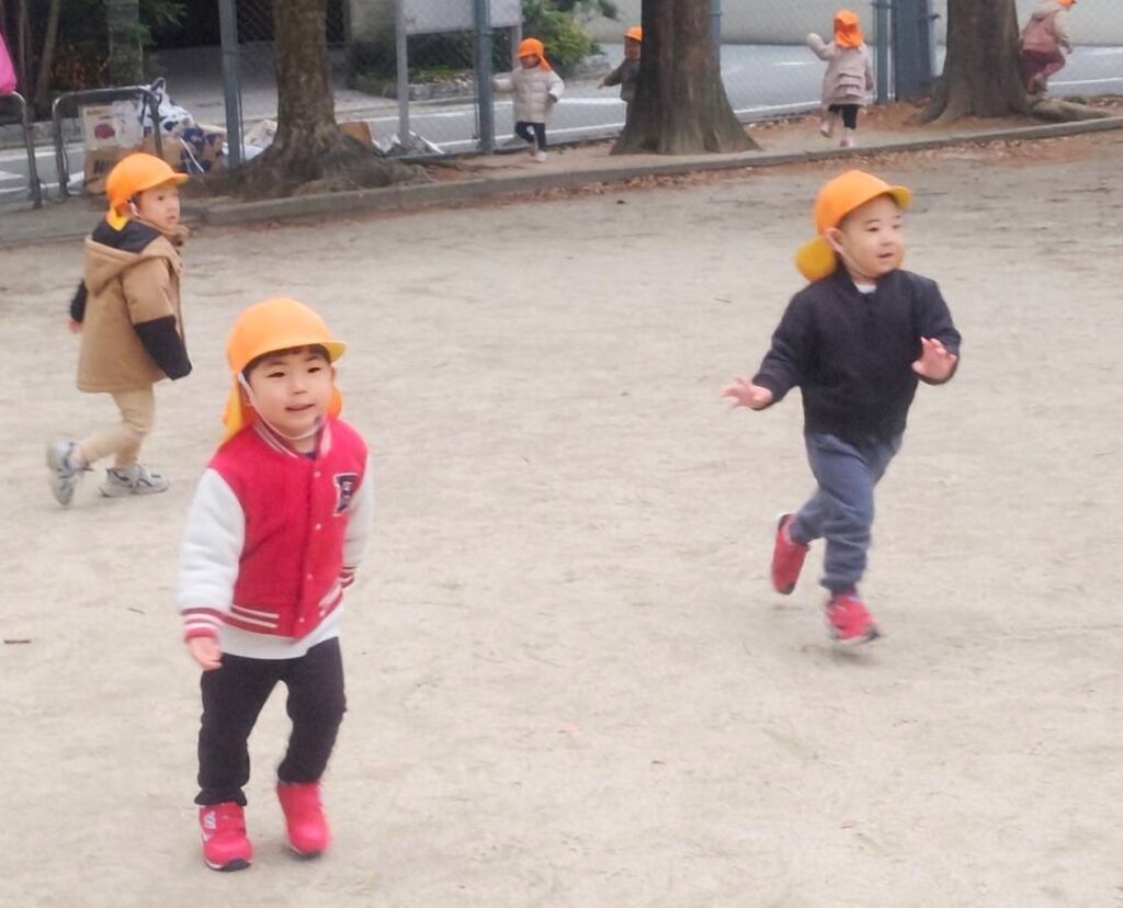 たーくさん追いかけっこをするお友だち、