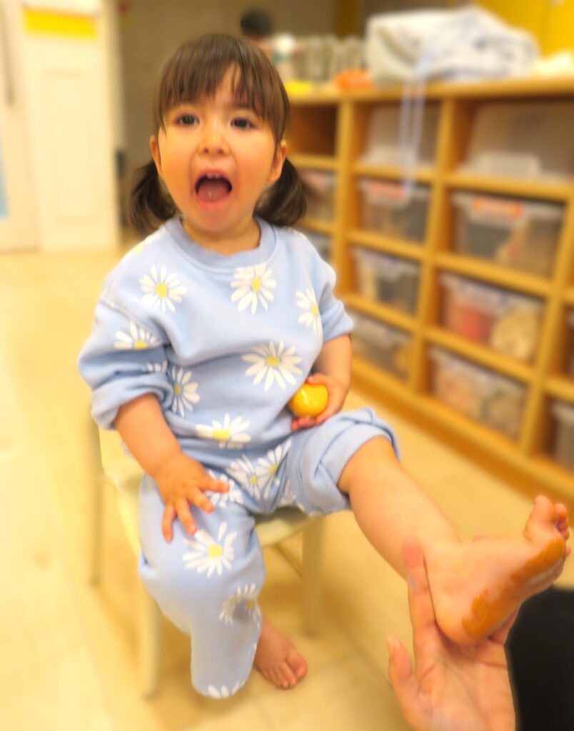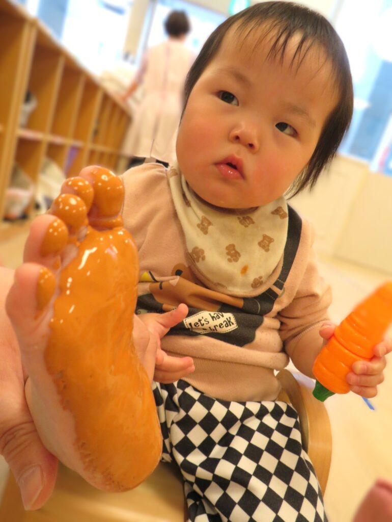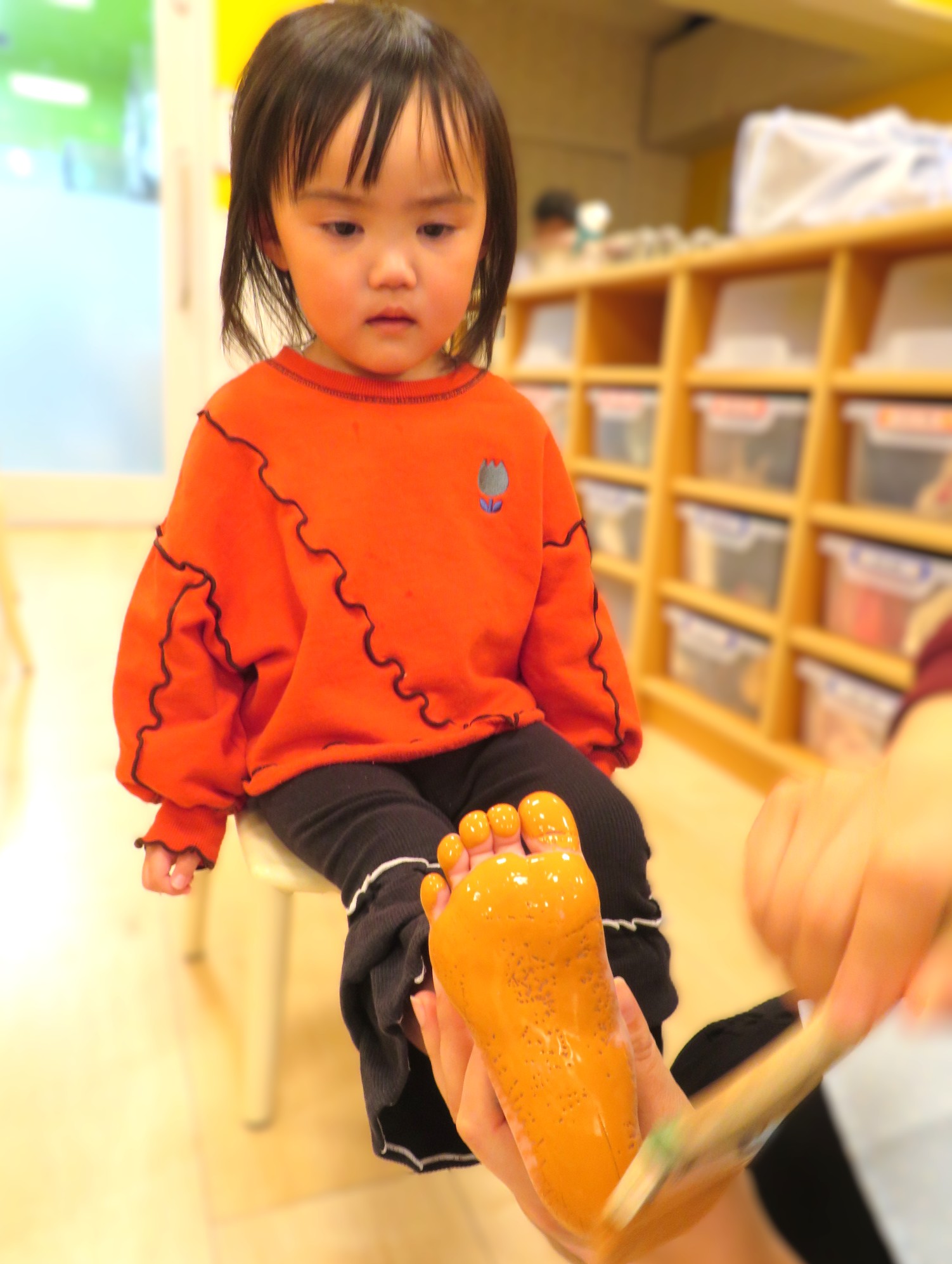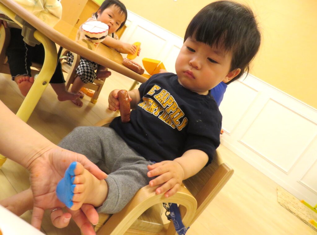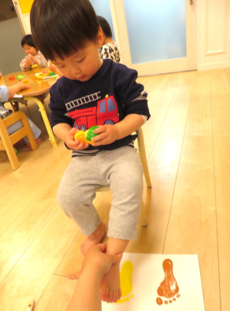 すこし絵の具やハケの感触が苦手なお友だちもいたようですが