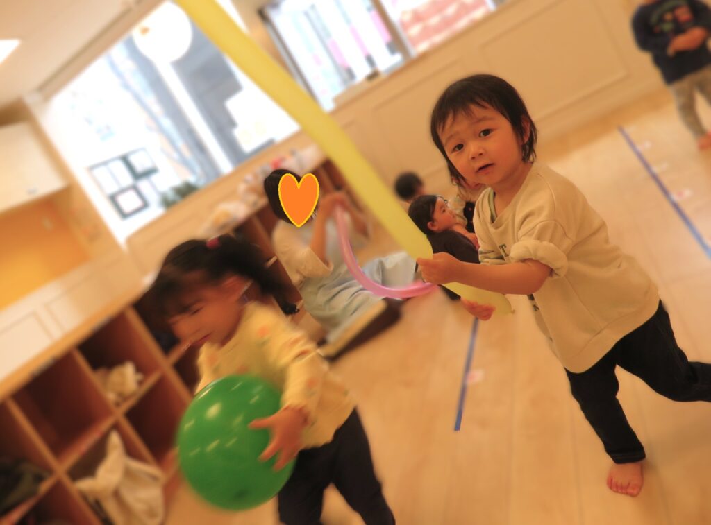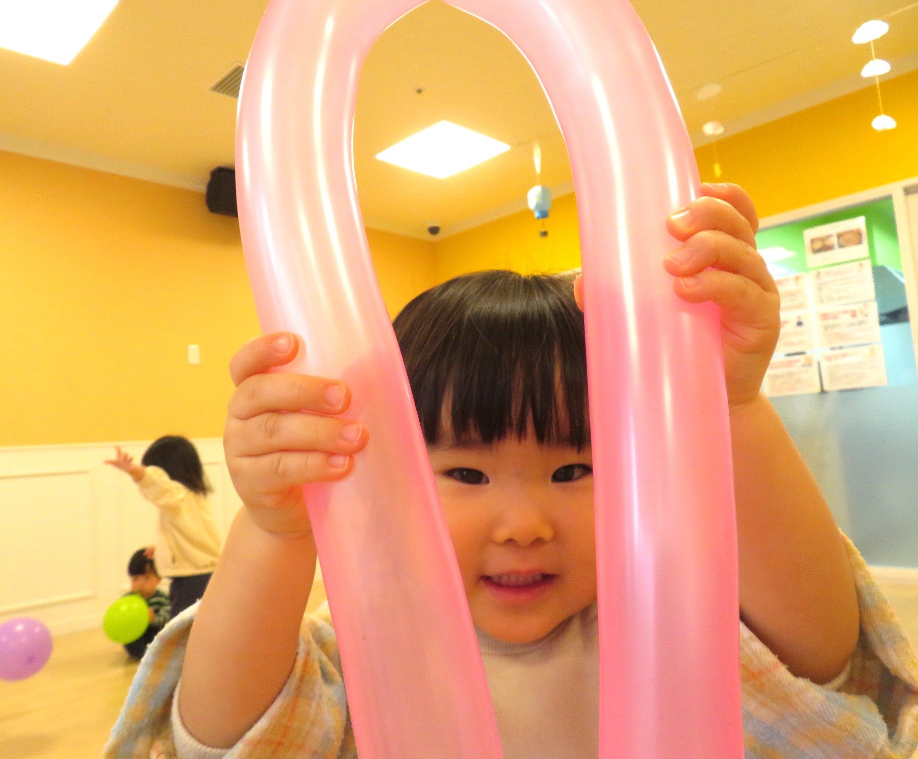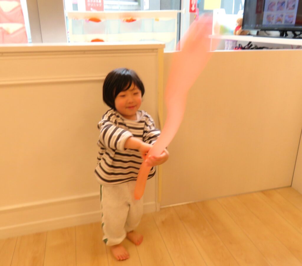 長い風船をチョイスしたお友だちは剣のように動かしたり、