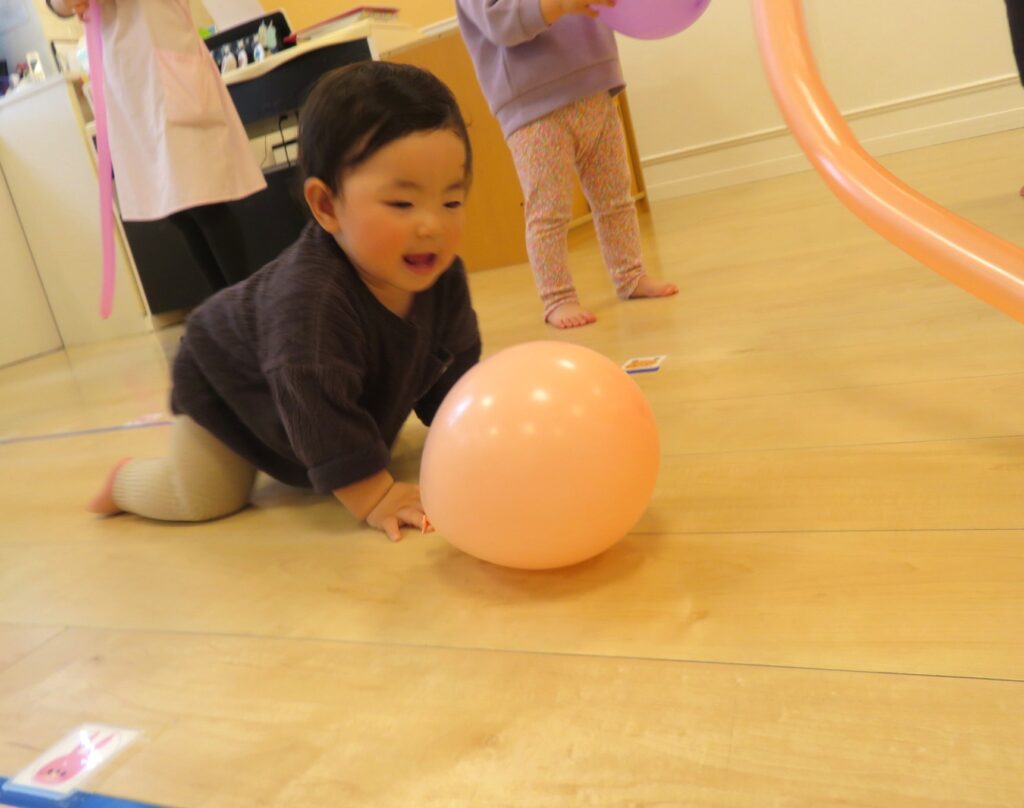 追いかけても追いかけても逃げて行く風船を必死につかもうとするOちゃんの姿が可愛かったです♡