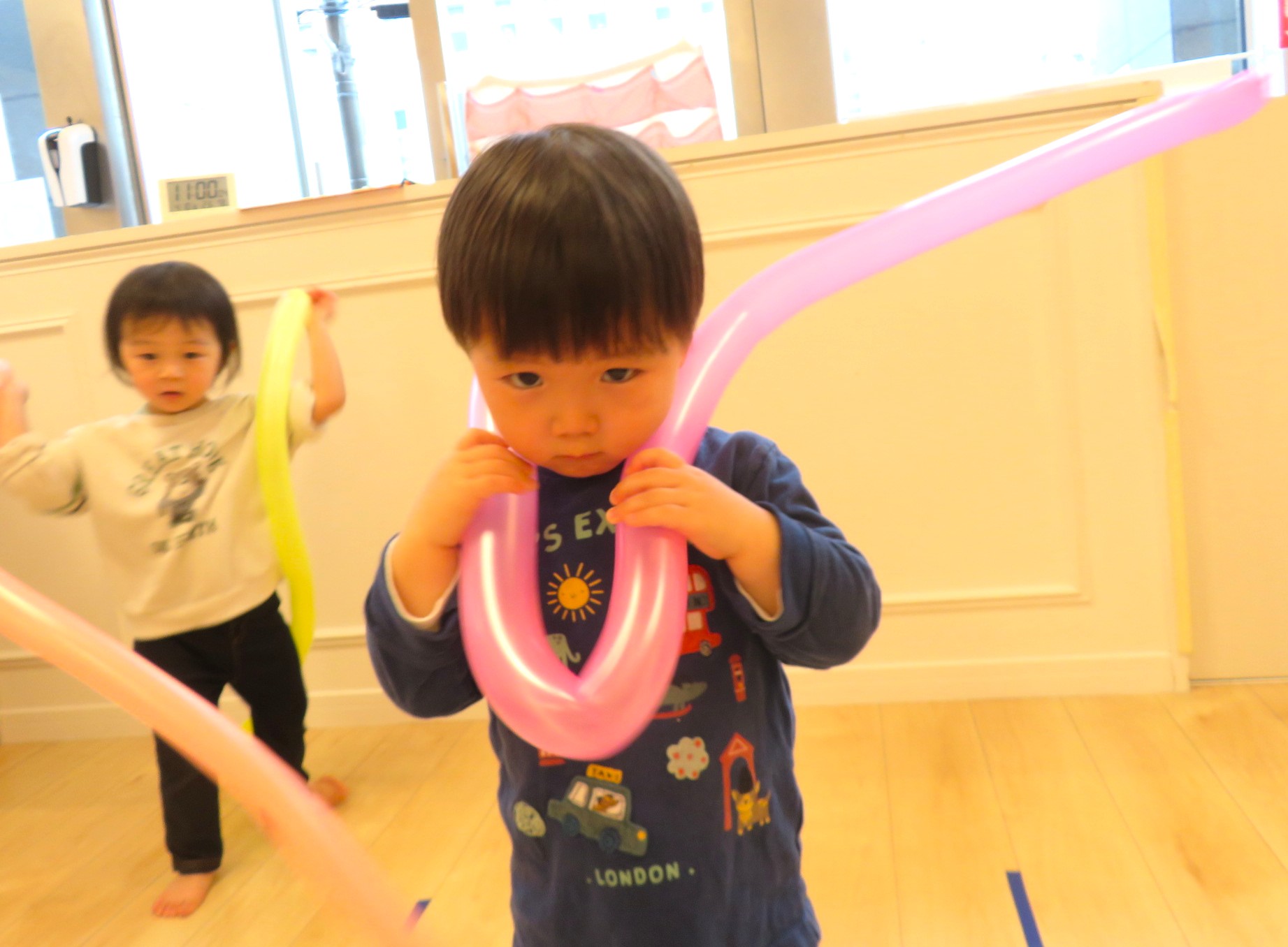 長い風船をチョイスしたお友だちは剣のように動かしたり、