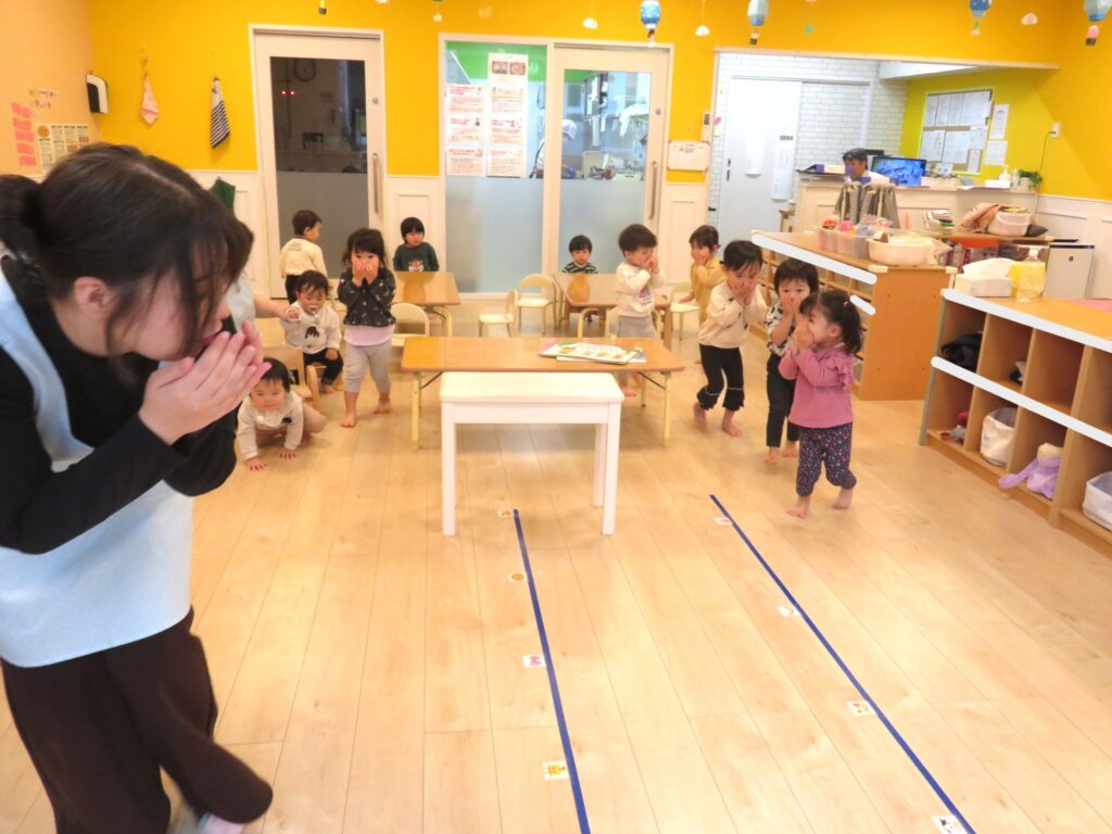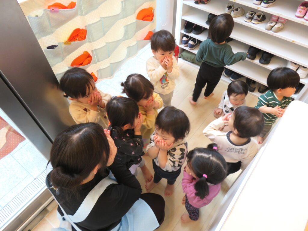 お手々マスクをして、玄関まで避難💨💨